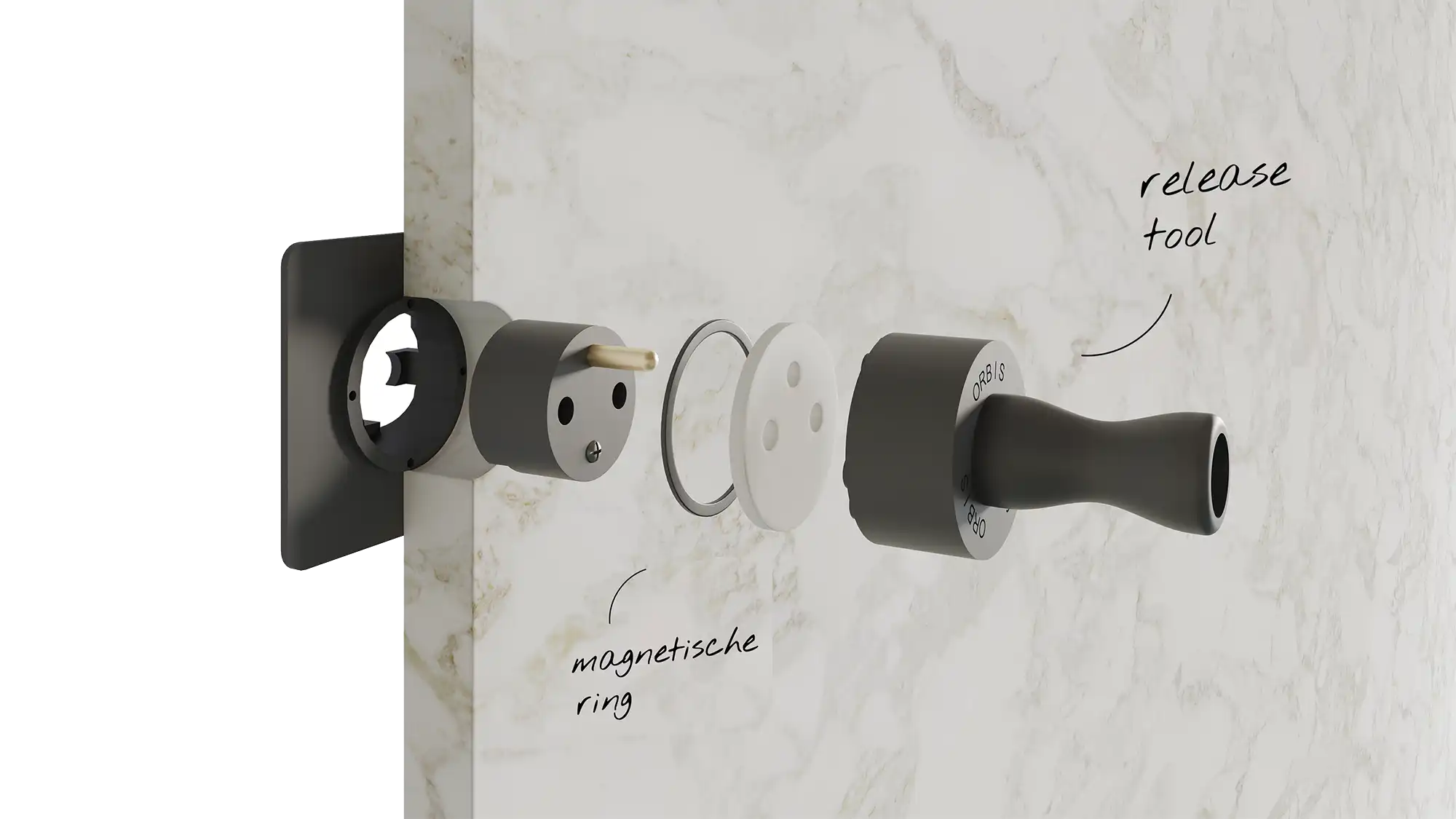 Orbis Design : quand la technologie disparaît au profit du design Dans l'architecture d'intérieur haut de gamme, ce sont souvent les détails qui déterminent la réussite d'un projet. Orbis Design est né de cette constatation : le résultat de la recherche d'une solution raffinée à un défi esthétique. Tous ceux qui utilisent la pierre naturelle comme plan de travail ou comme dosseret connaissent l'interruption visuelle causée par les prises standard noires ou blanches. Pour contrer ce bruit visuel dans le design, Ovius Kitchens, Eronda et Tablo Design, trois partenaires dans le domaine du design et de l'artisanat, ont mis au point un produit entièrement nouveau. C'est ainsi qu'est née la prise Orbis Design, une prise qui disparaît littéralement dans la pierre.